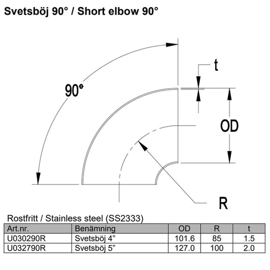 Suðubeygja 4" Stainless (102mm)